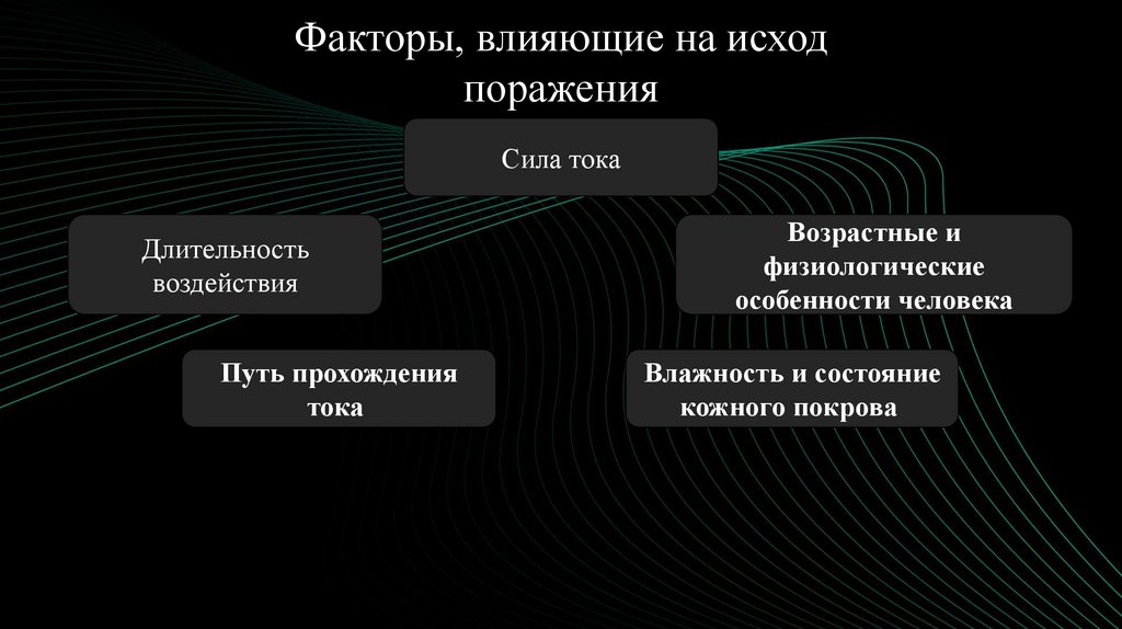 4. Особенности действия электрического тока на организм человека. Факторы, влияющие на исход поражения.