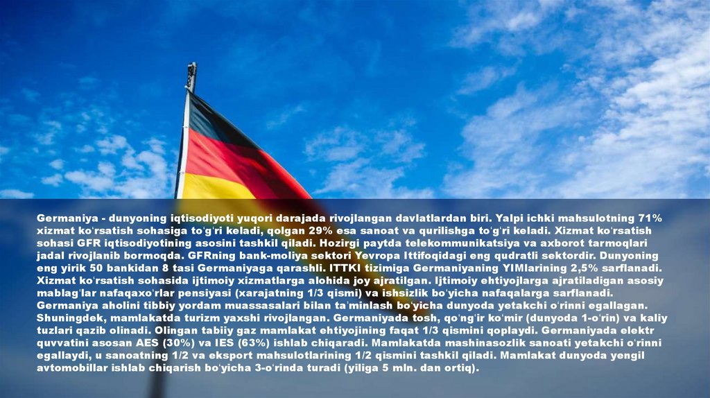GERMANIYAIqtisodiy o’rni va makroiqtisodiy