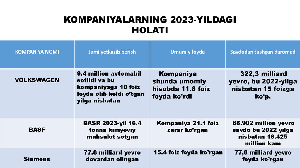 KOMPANIYALARNING 2023-YILDAGIHOLATI