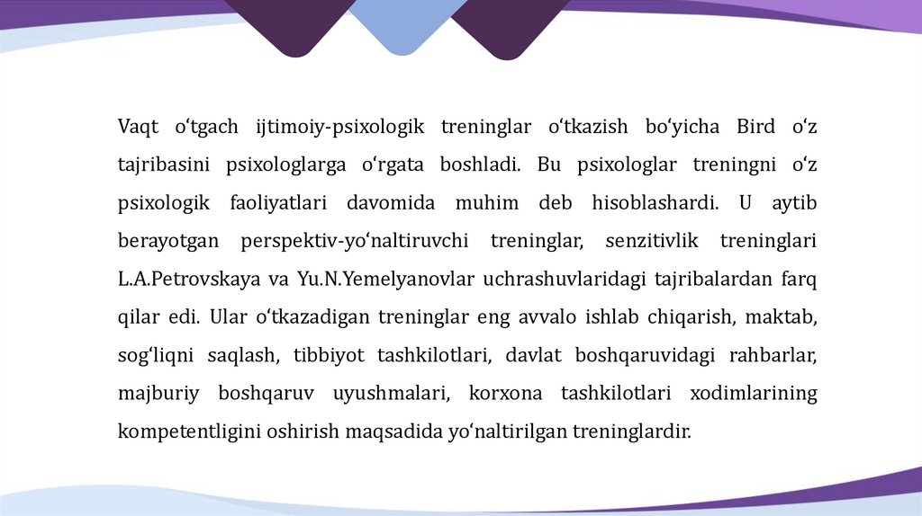 TRENINGNI RIVOJLANISH TARIXIPsixolog