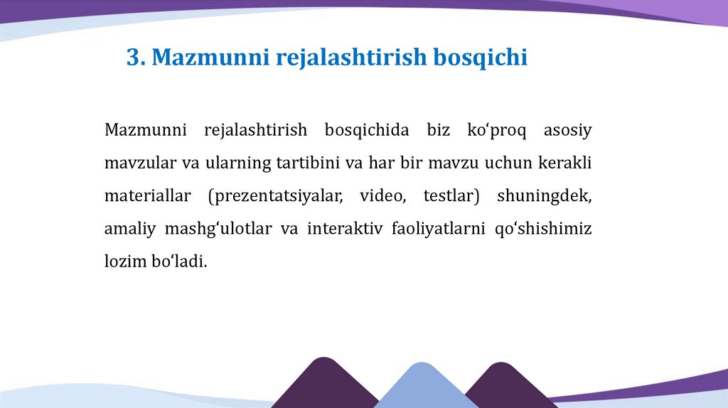 3. Mazmunni rejalashtirish bosqichiMazmunni rejalashtirish bosqichida biz ko‘proq asosiy
