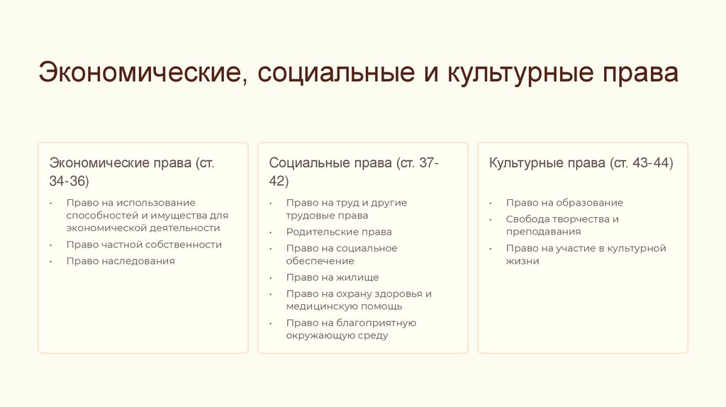 Экономические, социальные и культурные праваЭкономические права (ст.