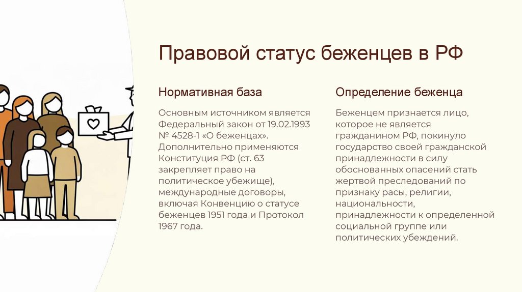 Правовой статус беженцев в РФНормативная база