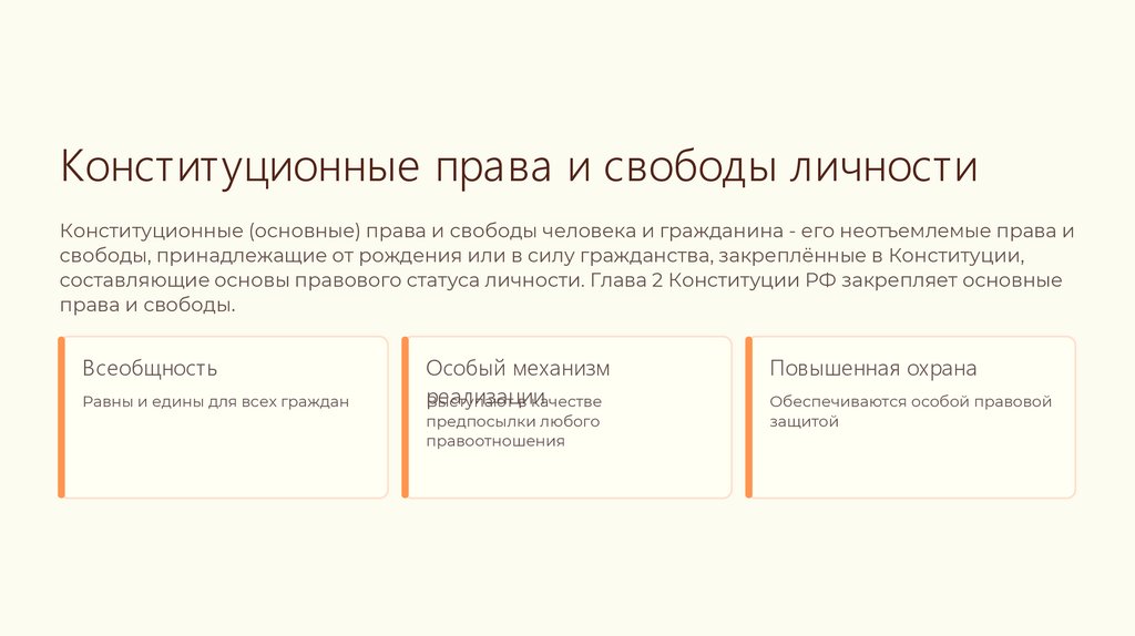 Конституционные права и свободы личностиКонституционные (основные) права и свободы человека и гражданина - его неотъемлемые права и