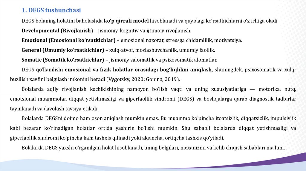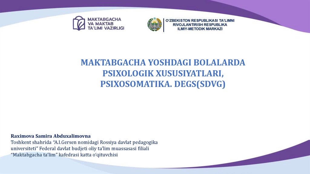 MAKTABGACHA YOSHDAGI BOLALARDA PSIXOLOGIKXUSUSIYATLARI, PSIXOSOMATIKA. DEGS(SDVG)