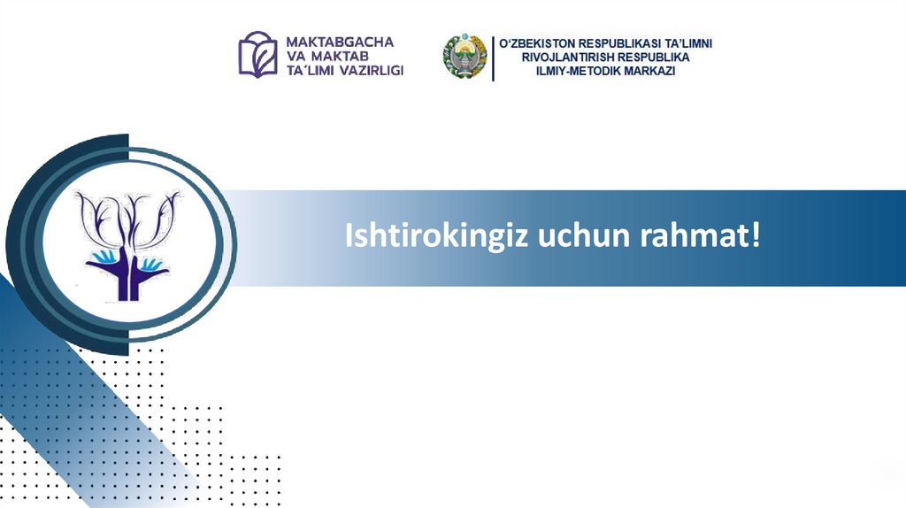 pedagoglar) va bolalar bilan muloqot qilishga, itoat etishga, hamkorlik qilishgaб ishlarni mustaqil