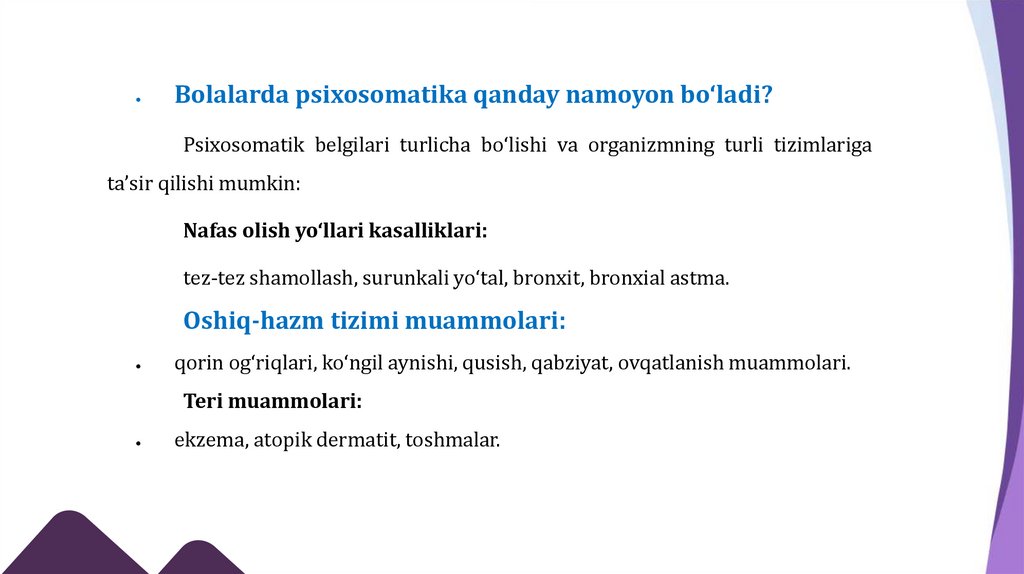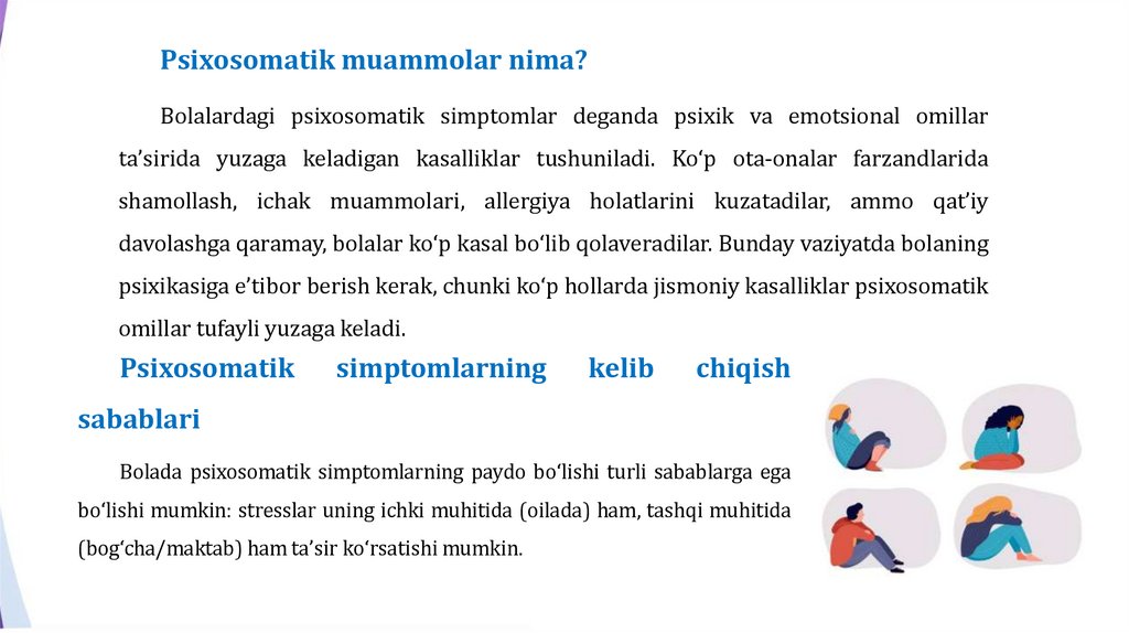 BOLALARDA PSIXOSOMATIKA1. Bolalarda psixosomatik simptomlarning mohiyati va sabablari