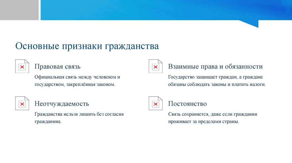 Основные признаки гражданстваПравовая связь