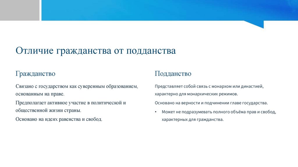 Отличие гражданства от подданстваГражданство