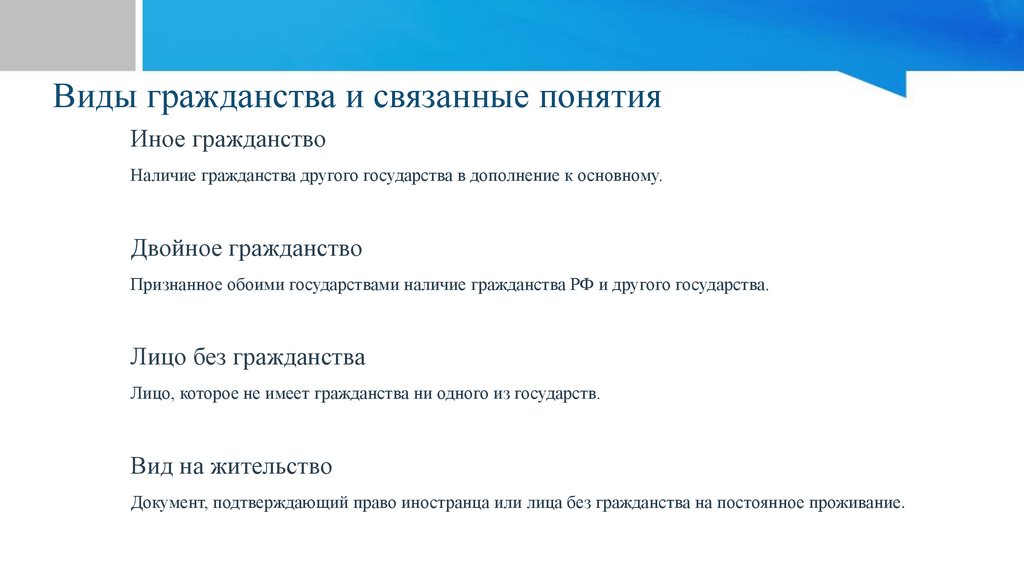 Виды гражданства и связанные понятияИное гражданство