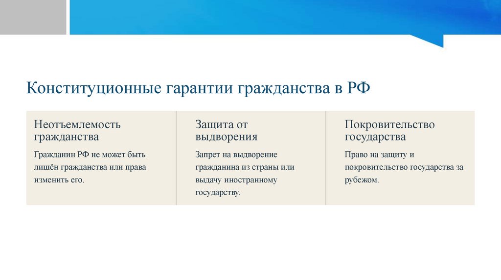 Конституционные гарантии гражданства в РФНеотъемлемость