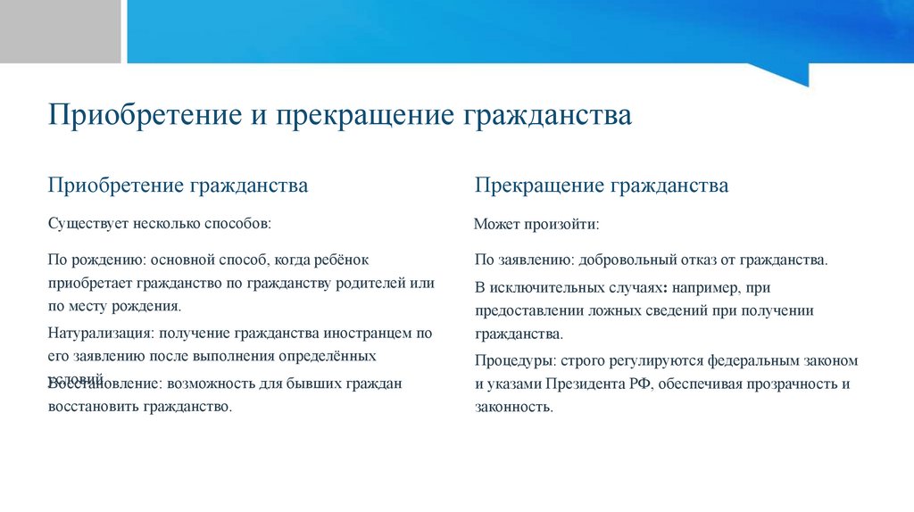 Приобретение и прекращение гражданстваПриобретение гражданства