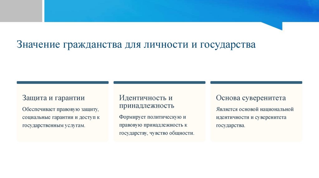Значение гражданства для личности и государстваЗащита и гарантии