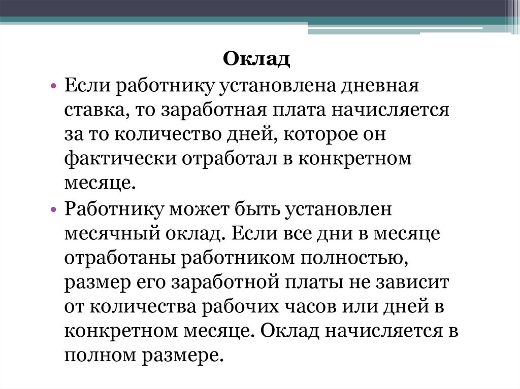 Оклад• Если работнику установлена дневная