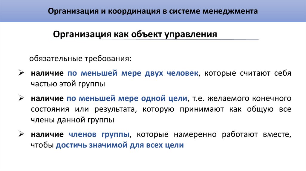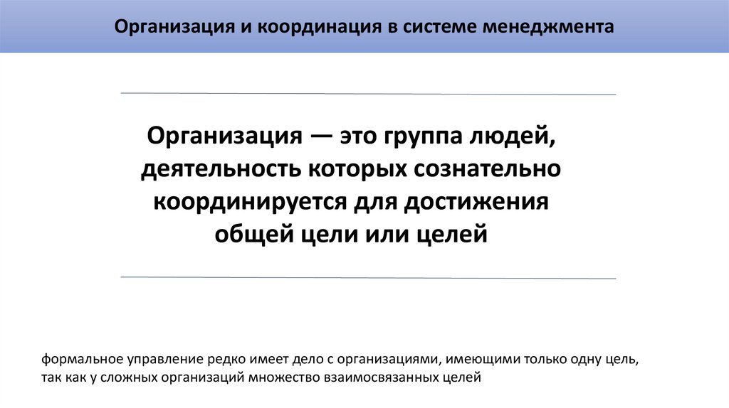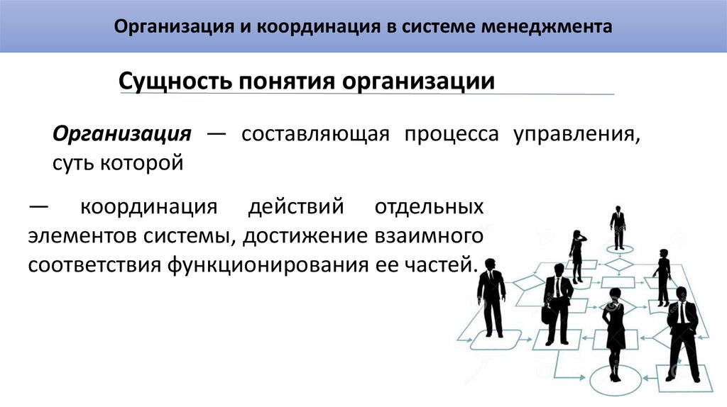 Организация и координация в системе менеджментаОрганизация — это группа людей,