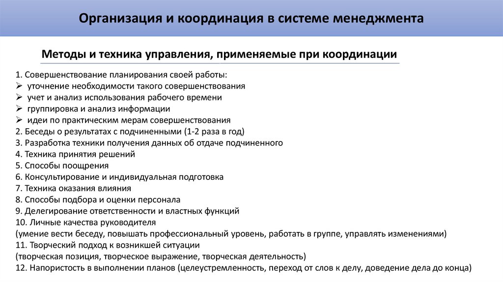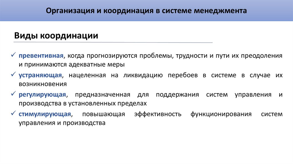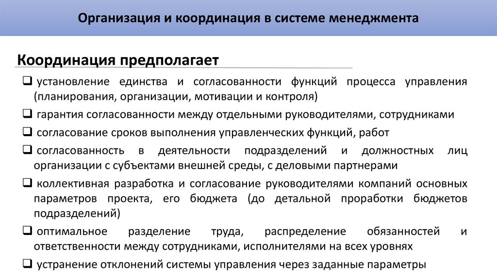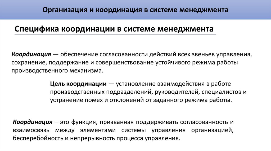 Организация и координация в системе менеджментаСпецифика координации в системе менеджмента