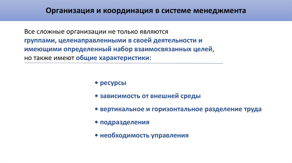 Организация и координация в системе менеджментаВсе сложные организации не только являются