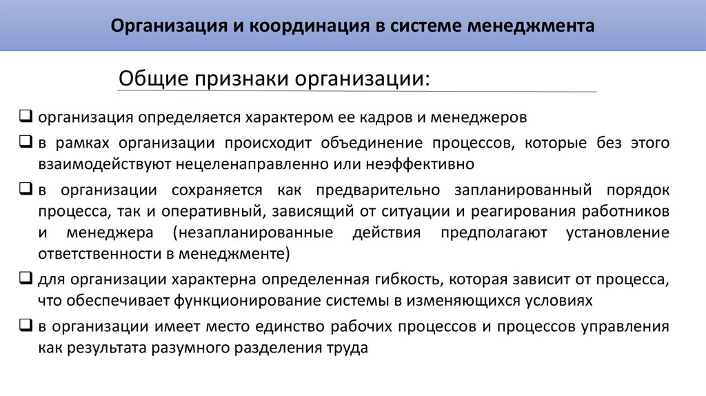 Организация и координация в системе менеджментаОбщие признаки организации: