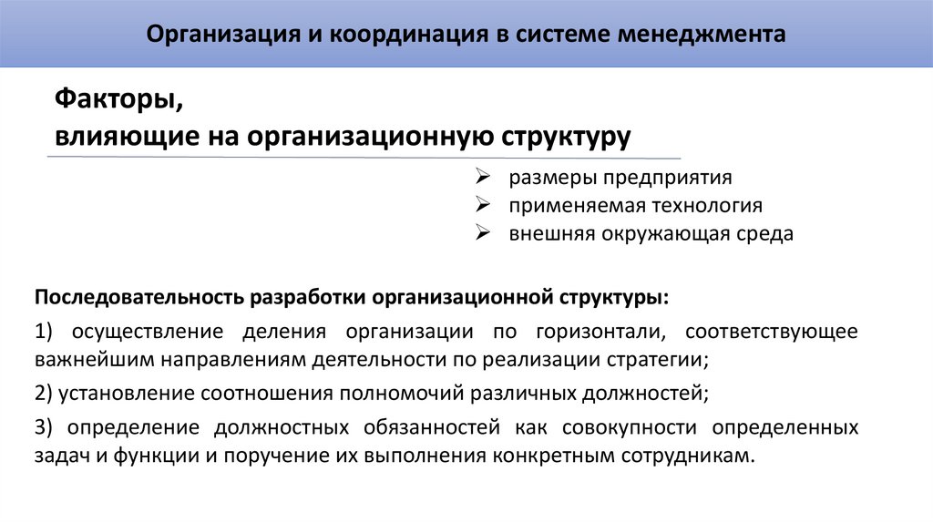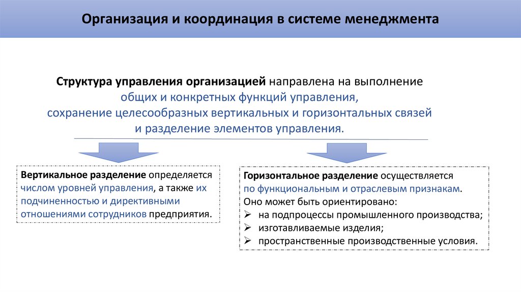 Организация и координация в системе менеджментаСтруктура управления организацией направлена на выполнение