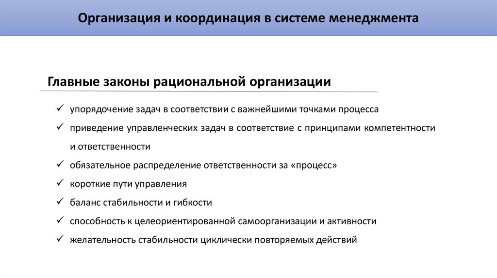 Организация и координация в системе менеджментаГлавные законы рациональной организации