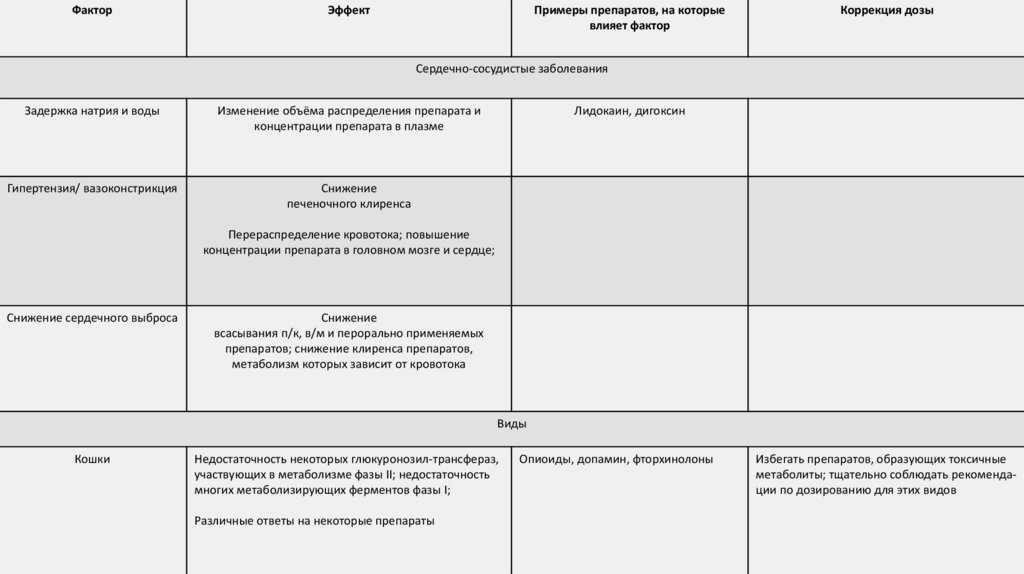 • Гемодинамика пациента (в т.ч. вазоконстрикция/вазодилатация, СВ,