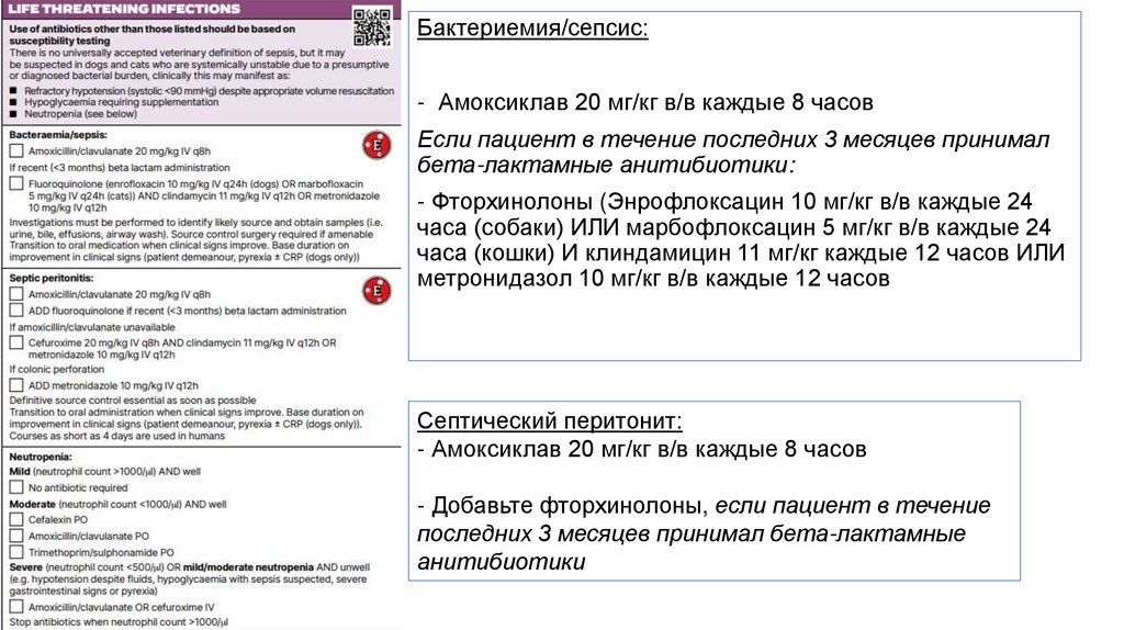 - Фторхинолоны (Энрофлоксацин 10 мг/кг в/в каждые 24