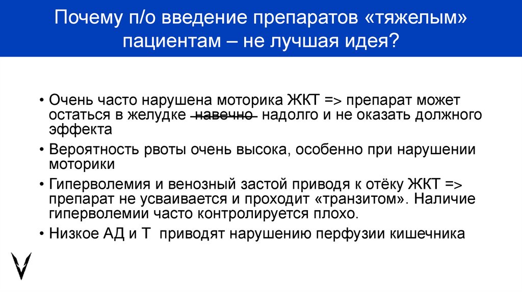 Почему п/о введение препаратов «тяжелым»пациентам – не лучшая идея?