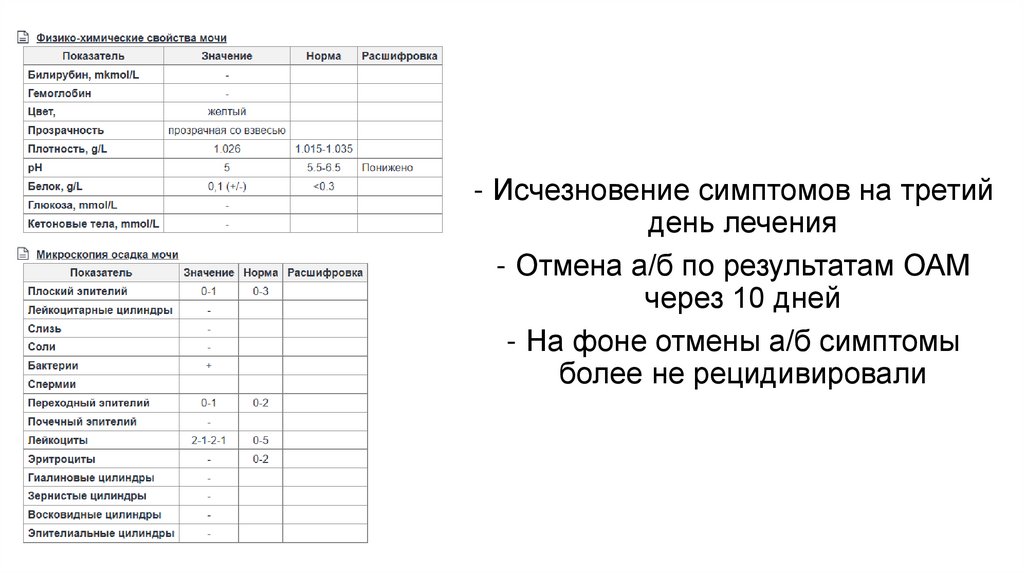 • Бессимптомная бактериурия (в т.ч. у спинальников и иммуносупрессированных