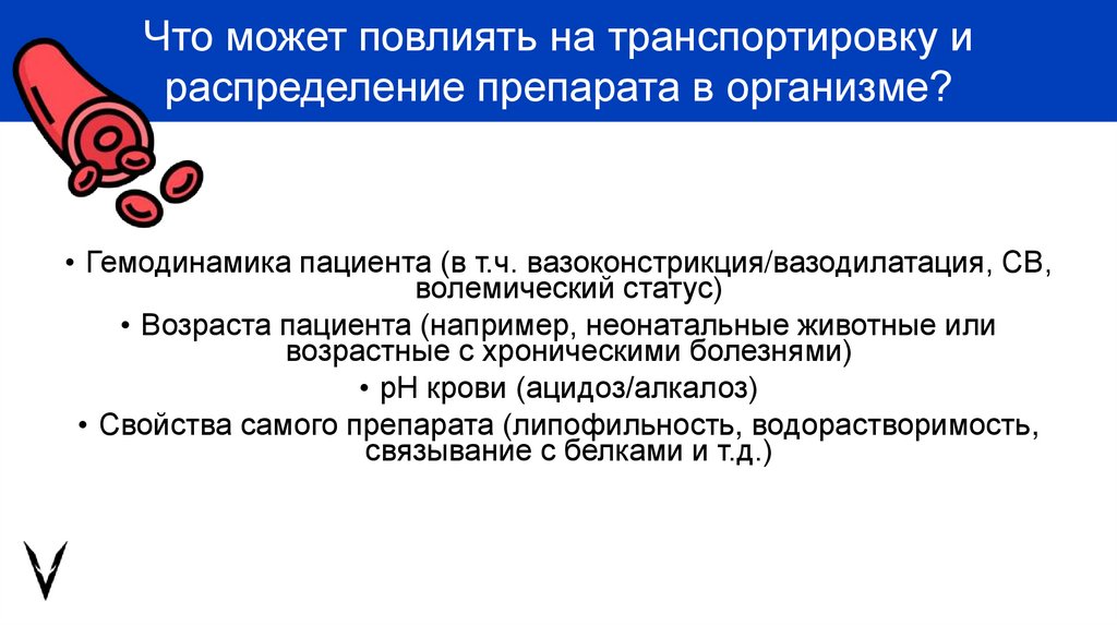 Что может повлиять на транспортировку ираспределение препарата в организме?