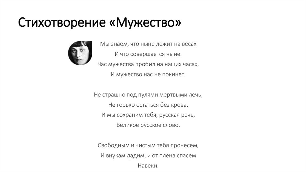 Стихотворение «Мужество»Мы знаем, что ныне лежит на весах