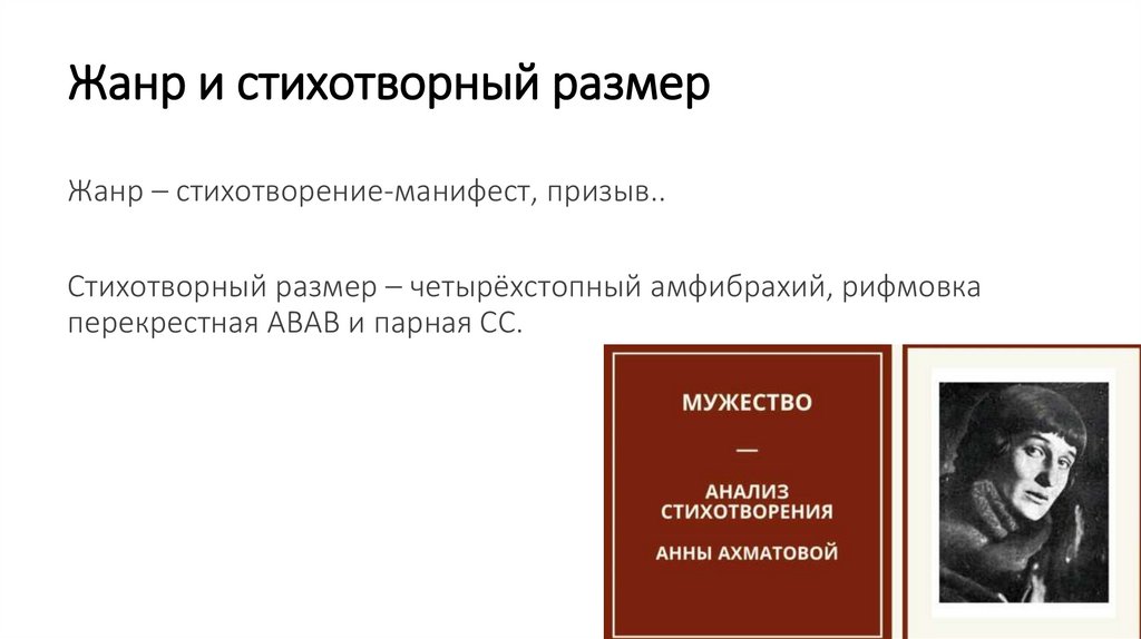 Жанр и стихотворный размерЖанр – стихотворение-манифест, призыв..