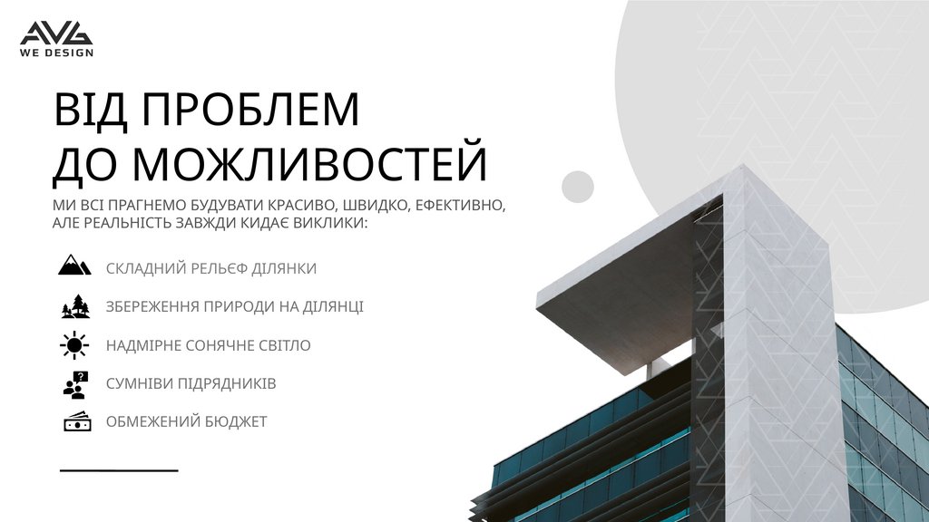 МИ В AVG GROUP НАВЧИЛИСЯ НАПРАВЛЯТИ ТЕХНОЛОГІЇ ТАК, ЩОБ БУДЬ-ЯКА ДІЛЯНКА, БУДЬ-ЯКИЙ РЕЛЬЄФІ БУДЬ-ЯКИЙ БЮДЖЕТ СТАВАЛИ СИЛЬНІШОЮ СТОРОНОЮ ПРОЄКТУ.