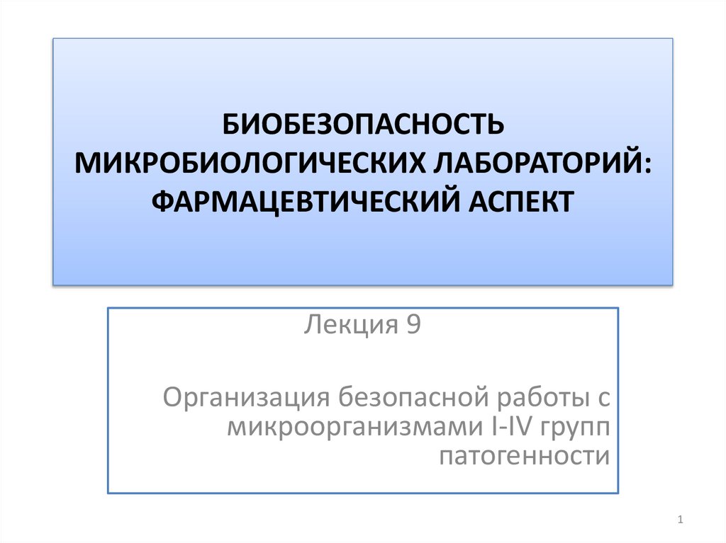 9. БИОБЕЗОПАСНОСТЬ МИКРОБИОЛОГИЧЕСКИХ ЛАБОРАТОРИЙ ФАРМАЦЕВТИЧЕСКИЙ АСПЕКТ