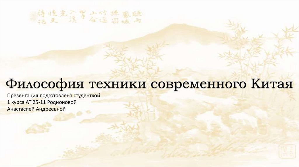 Философия техники современного КитаяПрезентация подготовлена студенткой