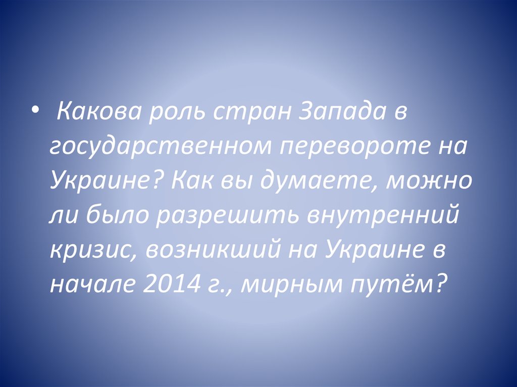 В феврале 2014 г. на Украине при прямойподдержке Запада произошёл кровавый