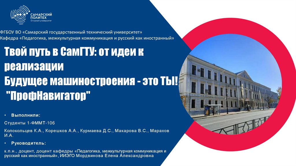 ФГБОУ ВО «Самарский государственный технический университет»Кафедра «Педагогика, межкультурная коммуникация и русский как иностранный»