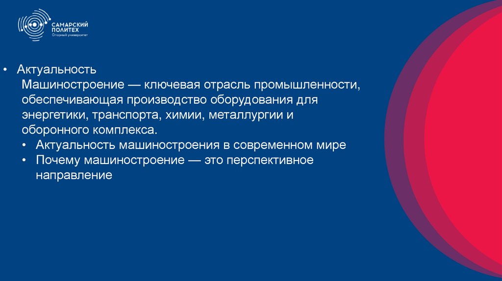 • АктуальностьМашиностроение — ключевая отрасль промышленности,