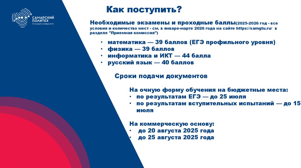 условия и количество мест - см. в январе-марте 2026 года на сайте https://samgtu.ru/ в
