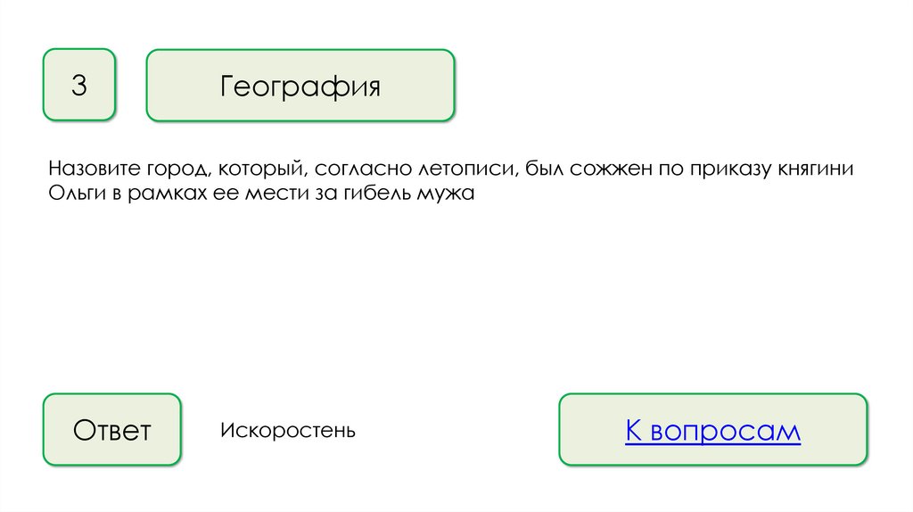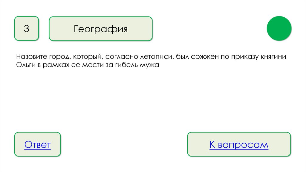 Назовите город, который, согласно летописи, был сожжен по приказу княгини