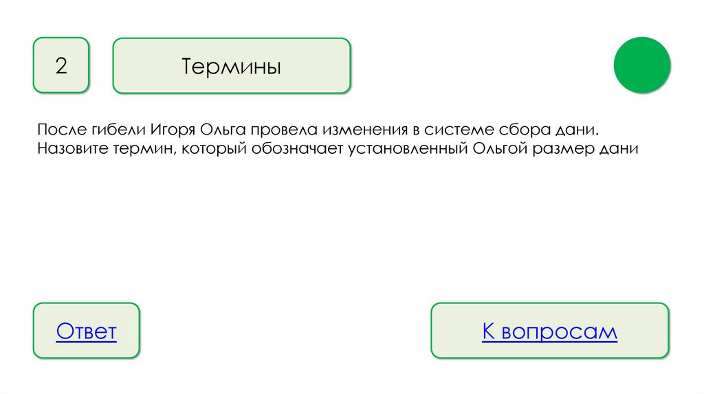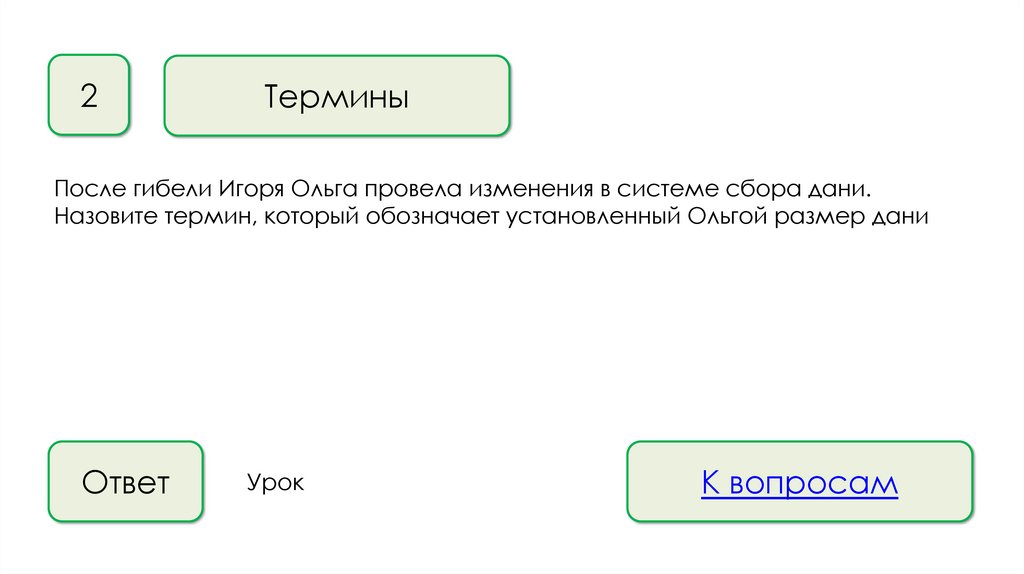 Назовите термин, который обозначает установленный Ольгой размер дани
