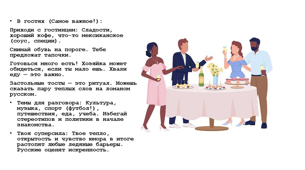 • Щедрость за столом:И мексиканцы, и русские любят обильно и вкусно