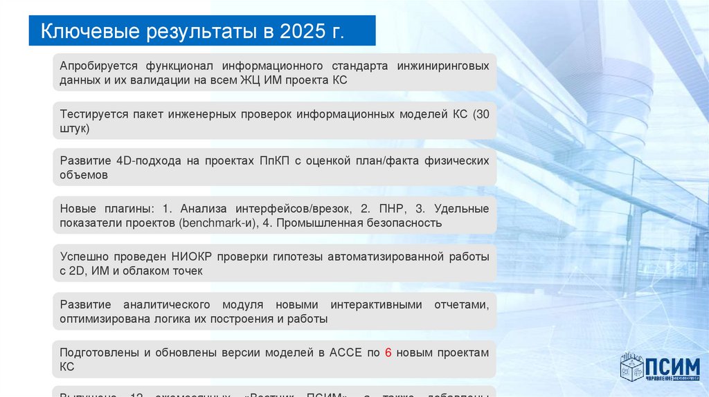 Ключевые результаты в 2025 г.Апробируется функционал информационного стандарта инжиниринговых