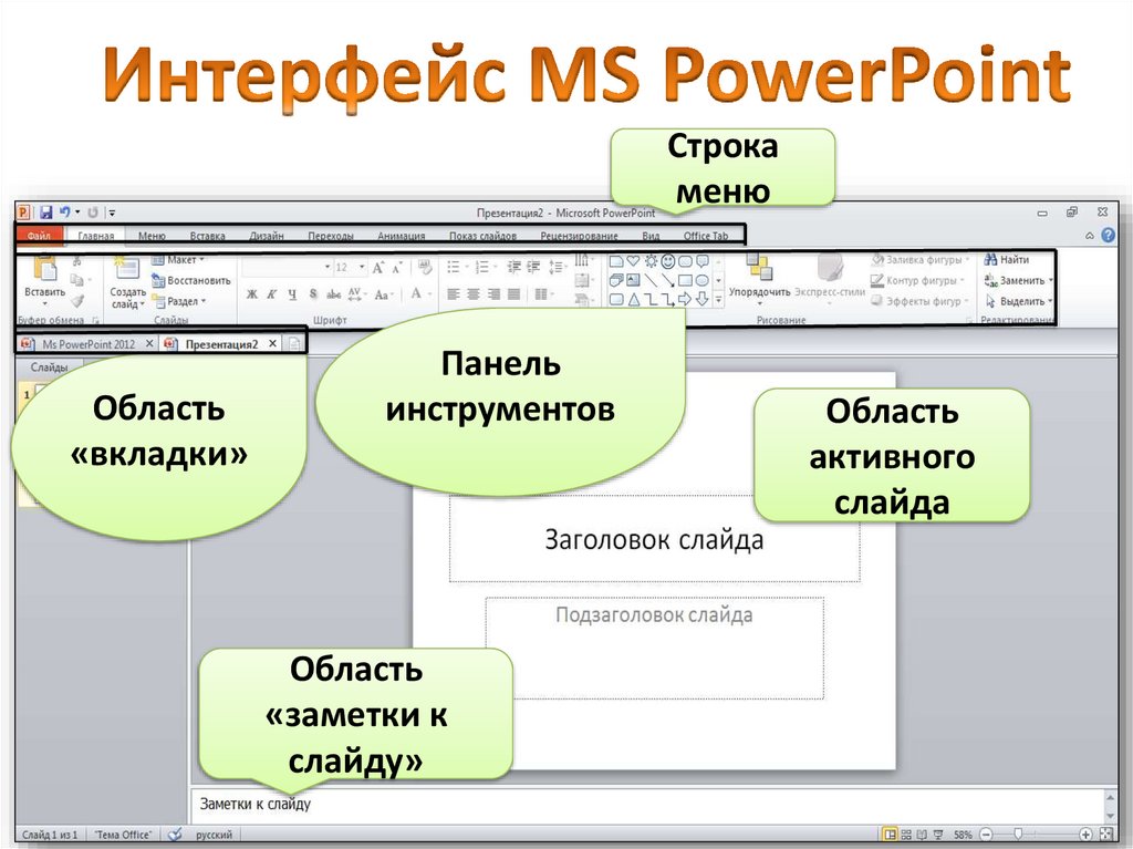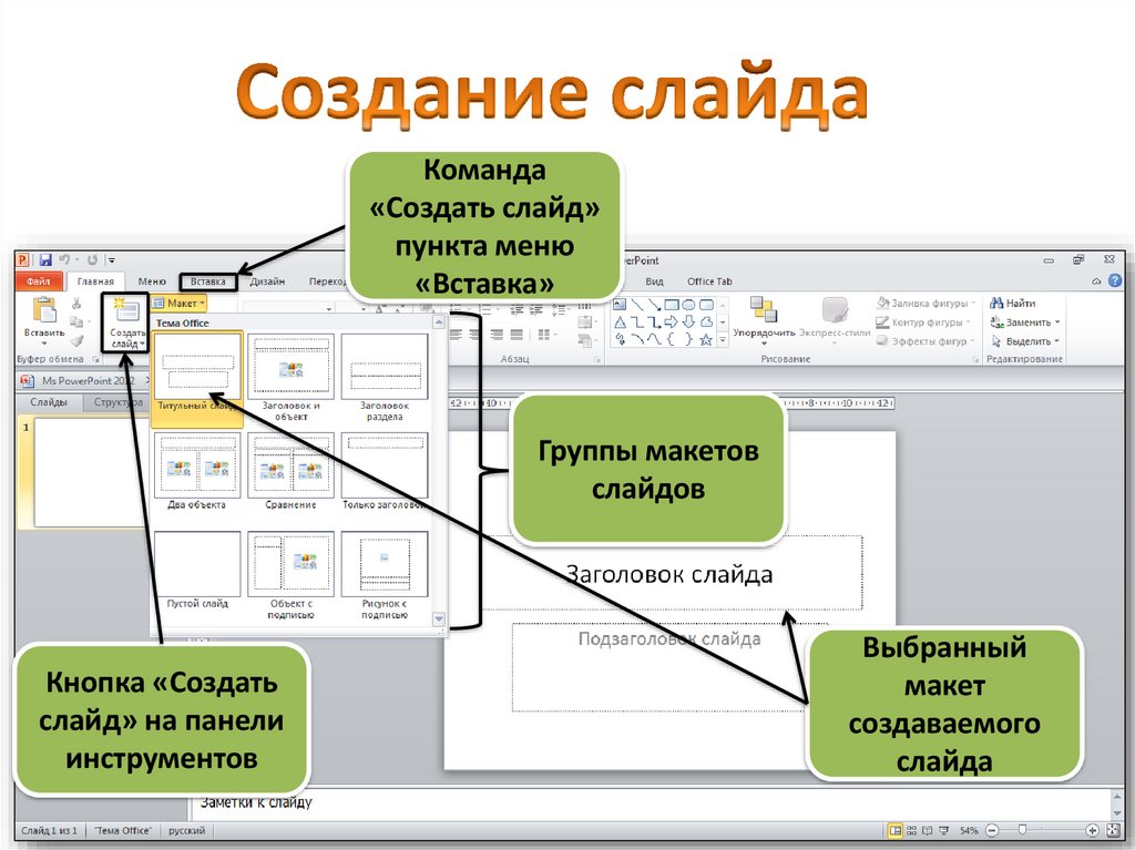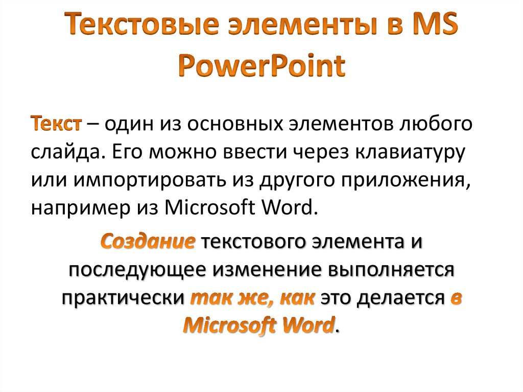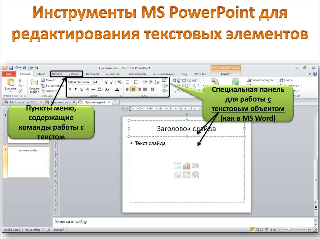 – один из основных элементов любогослайда. Его можно ввести через клавиатуру
