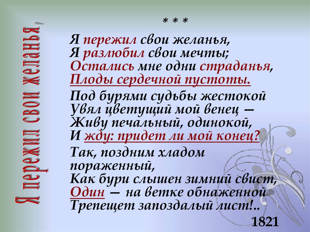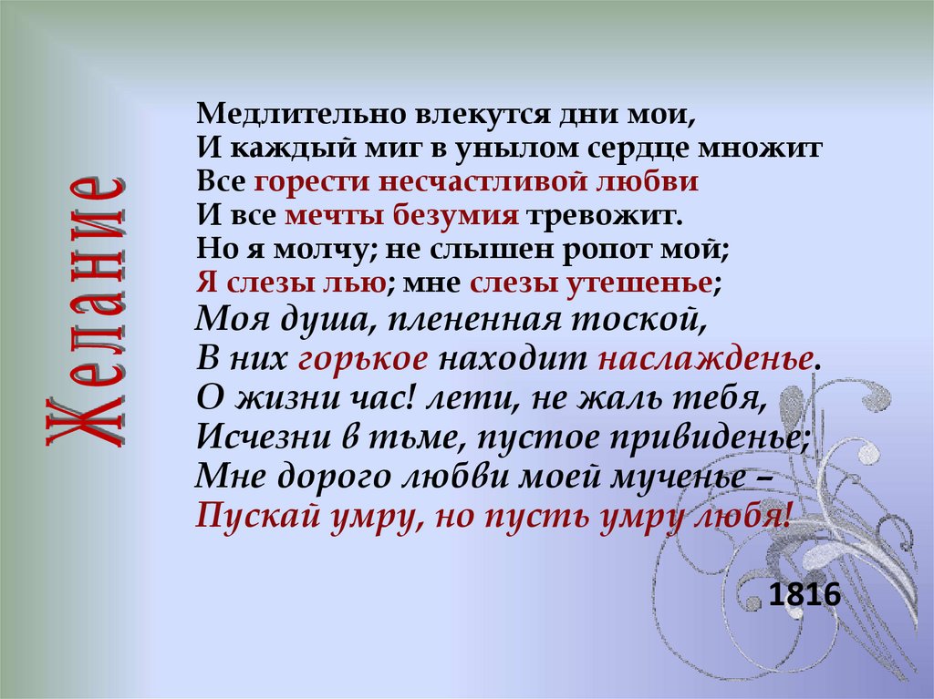 • В стихотворении "Желание" "горести