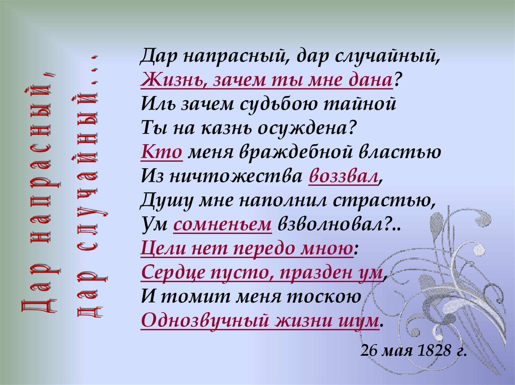 наслажденьями? Почему? Как это связано с биографией