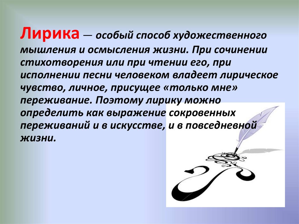 Лирика — особый способ художественногомышления и осмысления жизни. При сочинении