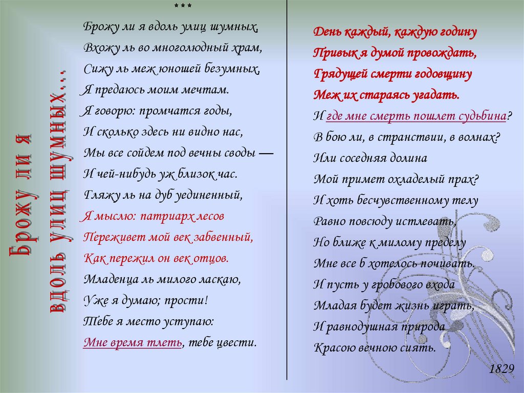 («Брожу ли я вдоль улиц шумных...»1829)
