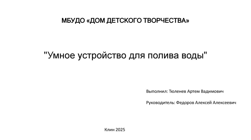 МБУДО «ДОМ ДЕТСКОГО ТВОРЧЕСТВА»"Умное устройство для полива воды"