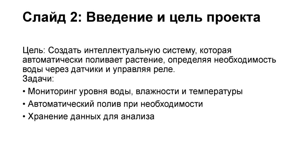 Слайд 2: Введение и цель проектаЦель: Создать интеллектуальную систему, которая