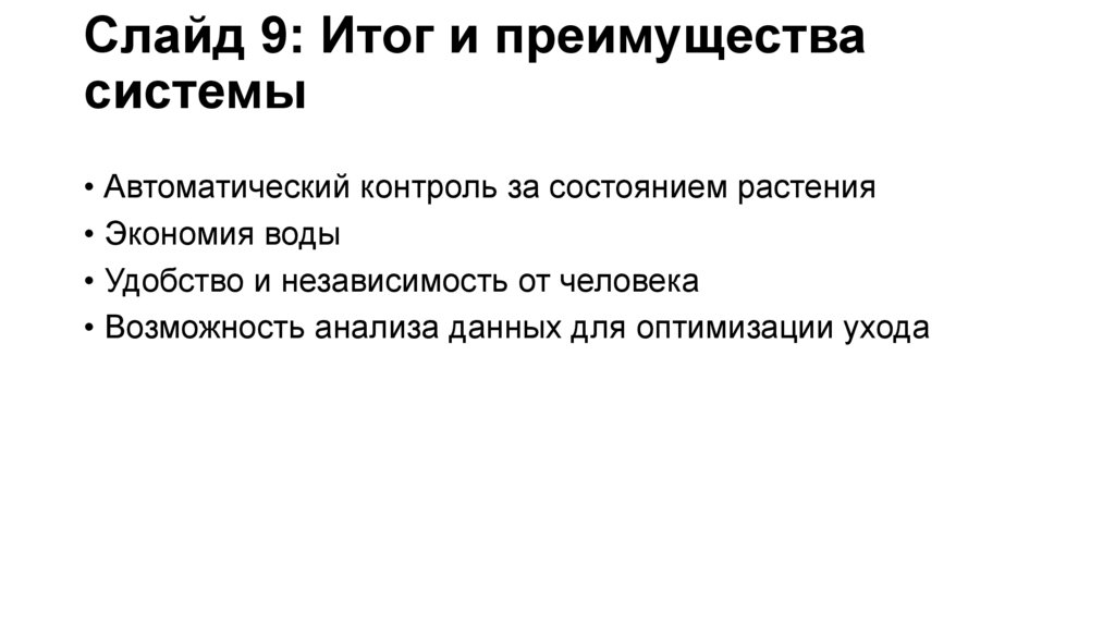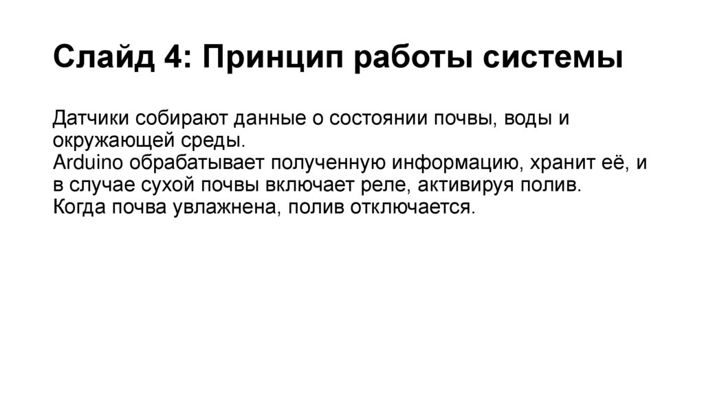 Слайд 4: Принцип работы системыДатчики собирают данные о состоянии почвы, воды и